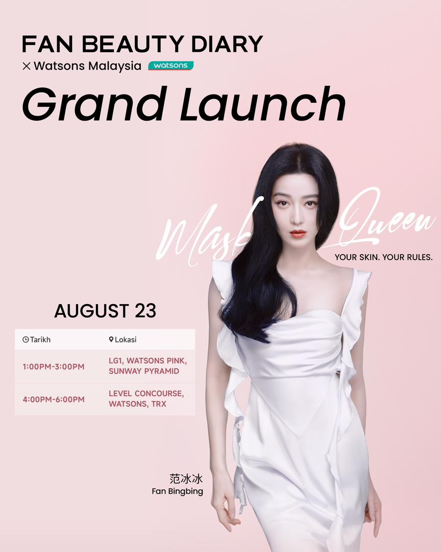 Jadual promosi Fan Bingbing di Malaysia bakal berlangsung pada 23 Ogos 2025 dengan dua penampilan istimewa, iaitu pada jam 1.00 tengah hari di Watsons Pink, Sunway Pyramid dan seterusnya pada jam 4.00 petang di Watsons, The Exchange TRX. Kehadiran selebriti ini dijangka menjadi tumpuan ramai peminat dan pencinta kecantikan, sekali gus menghangatkan lagi pelancaran rasmi Fan Beauty Diary di Malaysia.