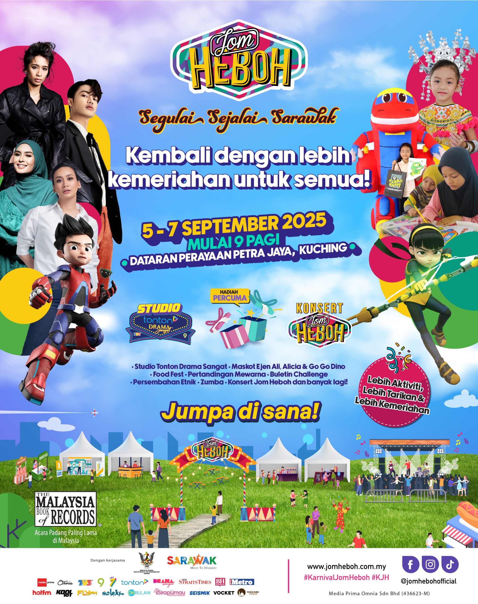 Karnival Jom Heboh Segulai Sejalai Sarawak 2025 bukan sekadar sebuah pesta hiburan, tetapi juga platform yang menyatukan komuniti, memperkenalkan budaya tempatan dan memberi peluang kepada pengunjung untuk merasai pengalaman istimewa bersama keluarga serta sahabat handai. Inilah masa terbaik untuk warga Sarawak turun beramai-ramai menikmati persembahan, aktiviti, makanan dan peluang berinteraksi bersama selebriti kegemaran.