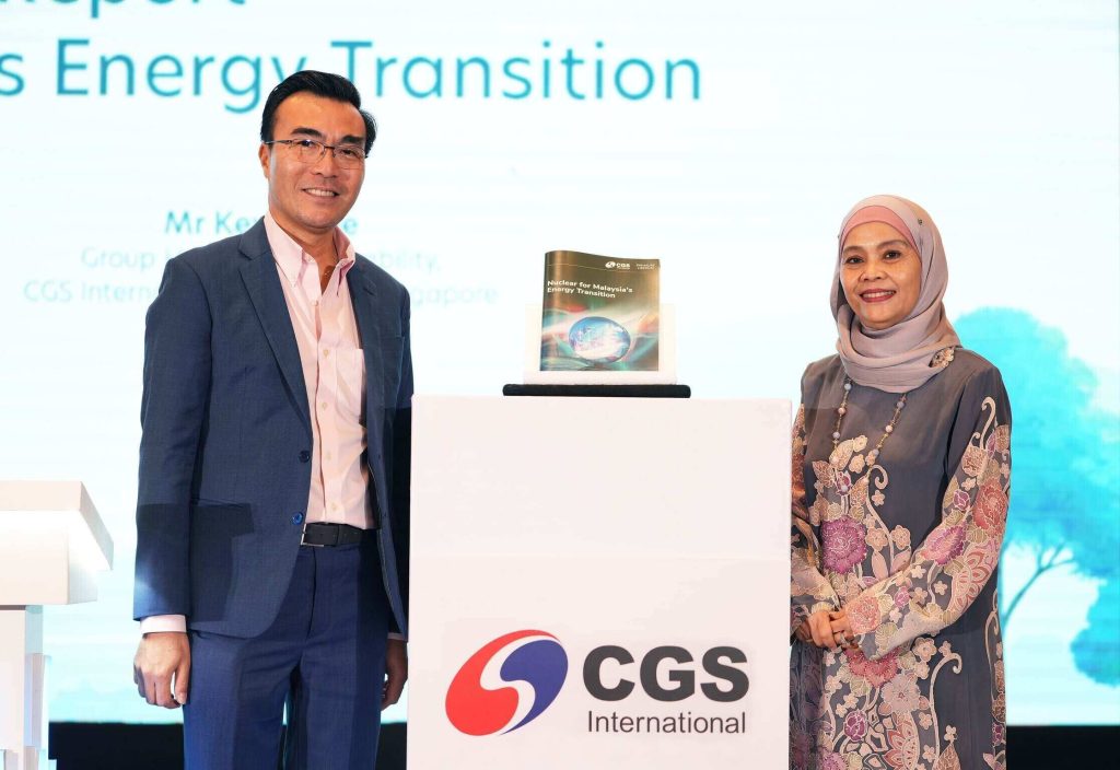Kevin Lee, Group Head of Sustainability, CGS International; and Puan Azizah Mohd Yatim, CEO of CGS MY; launching the Thematic Report on Nuclear for Malaysia’s Energy Transition jointly developed by CGS International and Panmure Liberum.