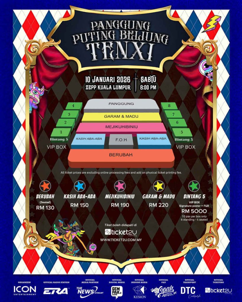 Kuala Lumpur bakal digegarkan dengan kehadiran dua bintang sensasi Nusantara apabila Icon Entertainment dengan bangganya mempersembahkan konsert “Panggung Puting Beliung”, menampilkan Tenxi dan Naykilla dalam satu malam penuh tenaga, inovasi, dan keunikan muzik. Konsert yang bakal berlangsung di Zepp Kuala Lumpur ini menandakan penampilan sulung Tenxi di Malaysia, sekaligus mempertemukannya dengan ribuan peminat tempatan yang telah lama menantikan detik bersejarah ini.
